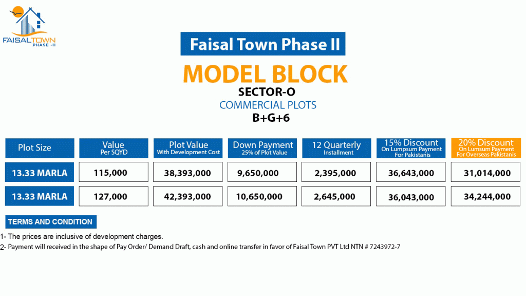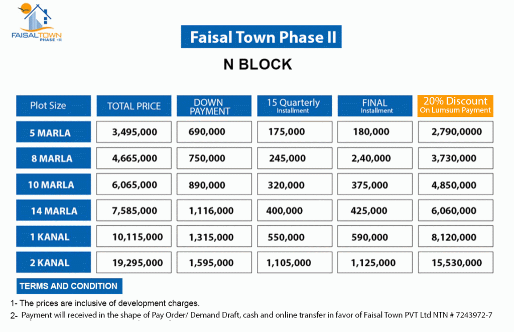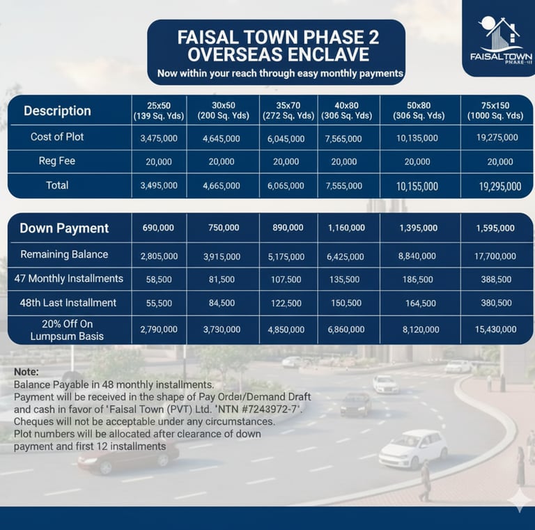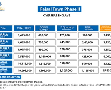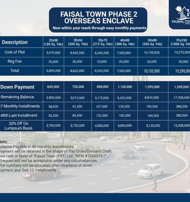 Faisal Town Phase 2 Overseas Block Payment Plan